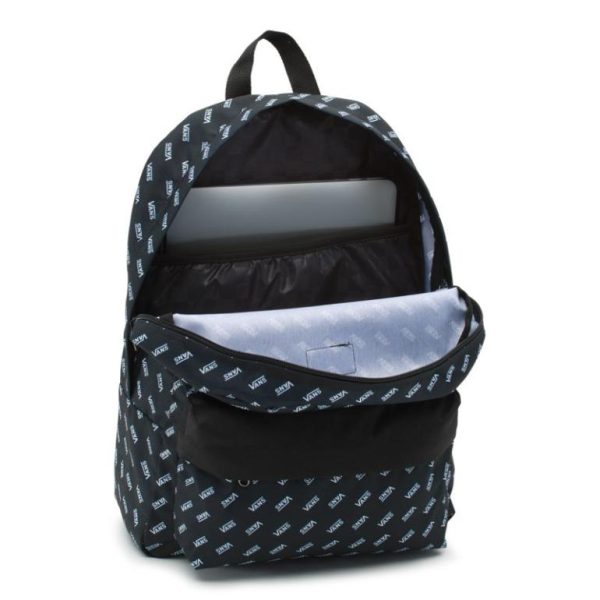 The Old Skool Backpack is a 100% polyester backpack featuring one large main compartment with a laptop sleeve (fits most 15″ laptops), a front zip pocket with an organizer for quick access, and straight-cut padded shoulder straps. Measuring 16.5 L x 12.75 W x 4.75 D inches, it has a 22-liter capacity.