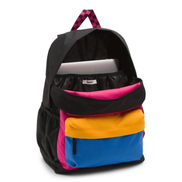 The Sporty Realm Plus Backpack is a 60% polyester, 40% recycled polyester backpack featuring a zippered main compartment with an interior laptop sleeve, a front pocket with an organizer, and adjustable padded shoulder straps. It also includes a side water bottle pocket, logo jacquard webbing, and a logo patch. Measuring 17.75 H x 13 W x 5.75 D inches, it has a 27-liter capacity.