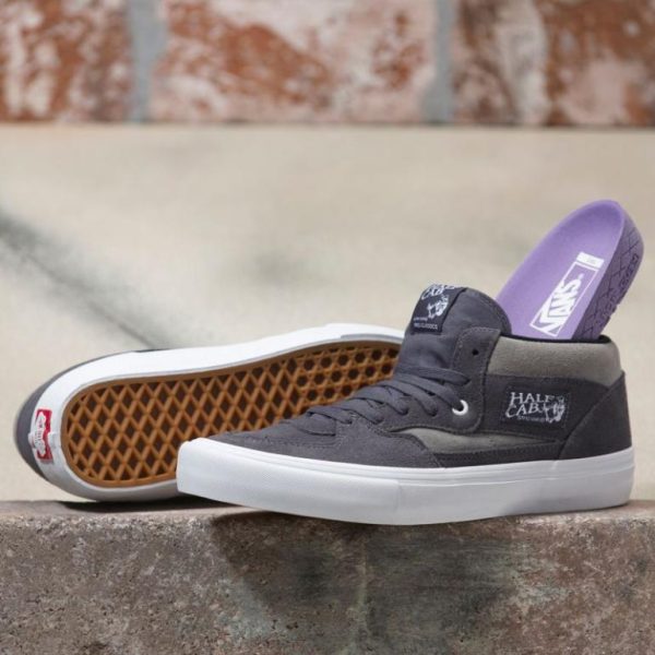 Steve Caballeros signature Half Cab Pro, a heritage skate style upgraded for enhanced performance, features sturdy suede and canvas uppers, single-wrap foxing tape, enhanced footbeds for superior cushioning and impact protection, and Vans original waffle outsoles made of a rubber that offers grip and support. The Half Cab Pro also includes DURACAP reinforcement rubber underlays in high wear areas for unrivaled durability, and Pro Vulc Lite construction to deliver the best in boardfeel, flex, and traction.