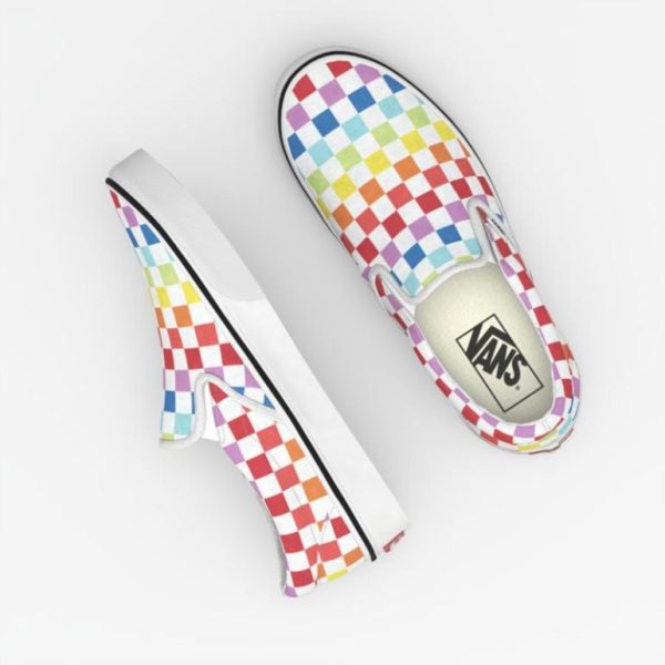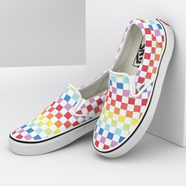 The iconic Checkerboard Classic Slip-On features durable low-profile slip-on canvas uppers showcasing the legendary Vans checkerboard pattern, enhanced with comfortable padded collars, flexible elastic side accents, and the signature grippy rubber waffle outsoles for superior traction.