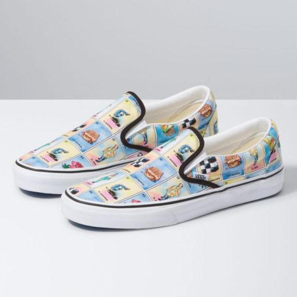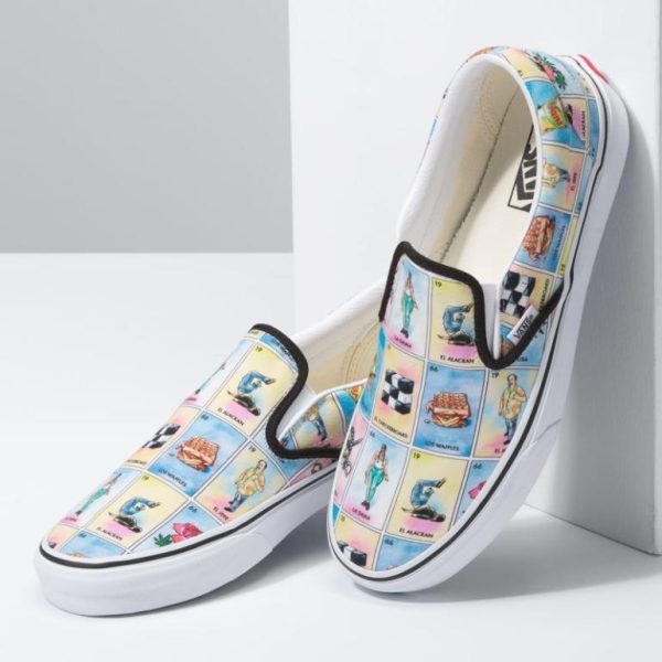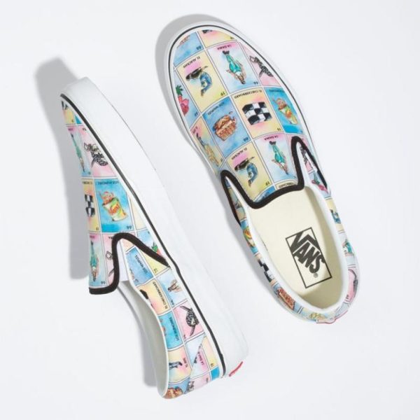The Los Vans Classic Slip-On features sturdy low profile canvas uppers with an allover print, padded collars, elastic side accents, and signature rubber waffle outsoles.