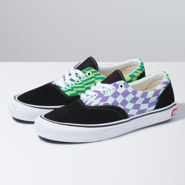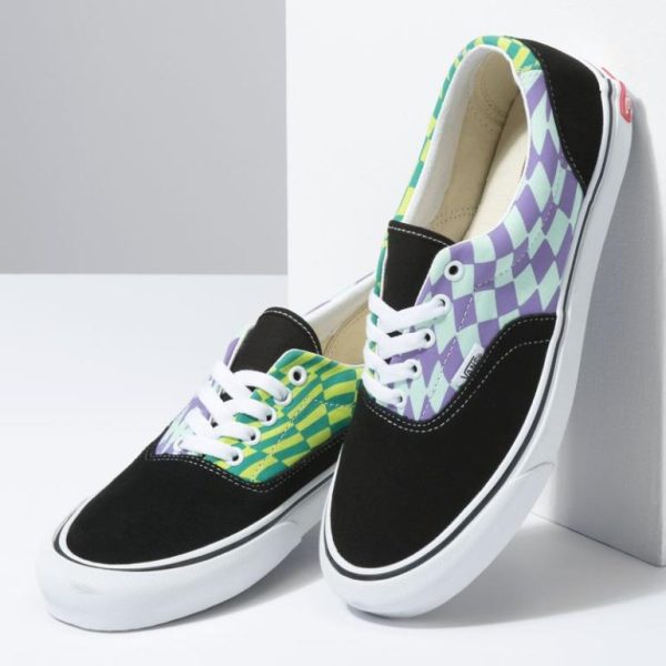 Using icons and twisting patterns, the Twist pack is a funky spin on our classic silhouettes. This pack mixes warped checkered patterns and swirling colors to bring together a wild collection in true “Off The Wall” fashion. Made with sturdy suede and canvas uppers, the Era Twist also features metal eyelets, padded collars, and signature rubber waffle outsoles.