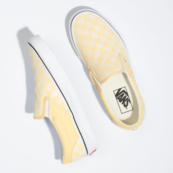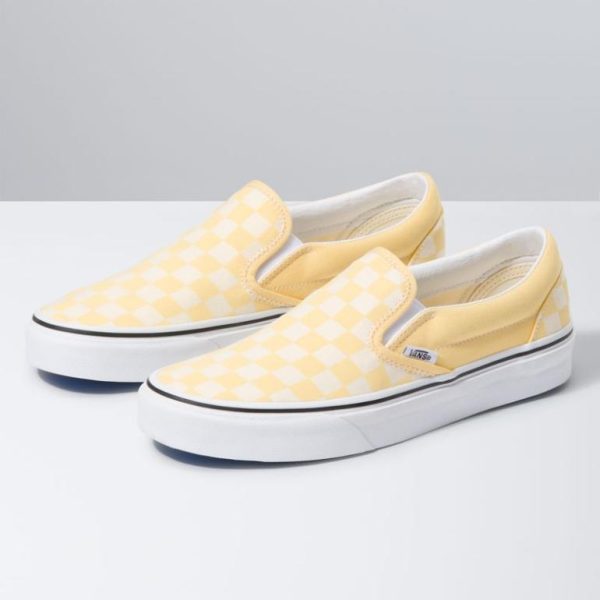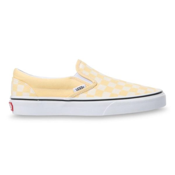 The Checkerboard Classic Slip-On features sturdy low profile slip-on canvas uppers with the iconic Vans checkerboard print, padded collars, elastic side accents, and signature rubber waffle outsoles.
