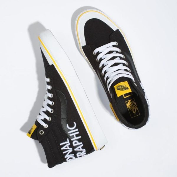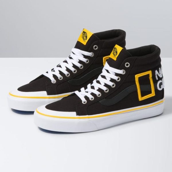 Vans and National Geographic come together for a collection of footwear and apparel that celebrates over 130 years of the never-ending quest to explore our planet. Honoring National Geographic’s longstanding tradition of seeking and storytelling, the Vans X National Geographic Sk8-Hi Reissue 138 combines the legendary reissued high top with organic cotton canvas uppers and embroidery showcasing National Geographic’s iconic yellow portal. It also includes re-enforced toecaps to withstand repeated wear, padded collars for support and flexibility, and signature rubber waffle outsoles.