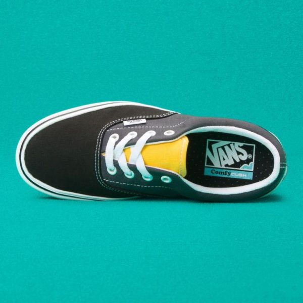 Vans has reinvigorated the classic Era silhouette by introducing ComfyCush technology: a new softer, cushiony outsole that gives the ComfyCush Era a first-class fit that feels like walking on a cloud. Featuring a co-molded construction of foam and rubber for the perfect combination of both comfort and grip, the Tri-Tone ComfyCush Era also includes rubber outsoles offering durability and traction, simplified one-piece interiors with added arch support, and moisture-wicking lining materials throughout the interior of the shoe. Along with newly constructed canvas uppers that focus on tongue stabilization, the Tri-Tone ComfyCush Era gives a retro nod to the Vans sport styles of the early 90s, and provides an experience where comfort is vital.