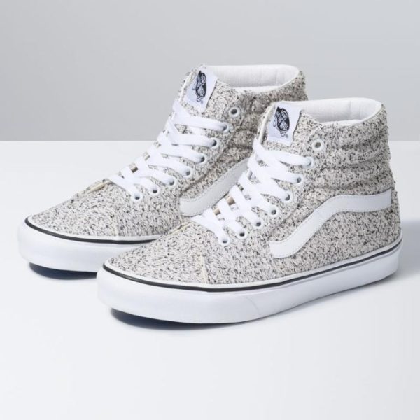The Boucle Sk8-Hi combines the legendary Vans lace-up high top with boucle textile uppers, re-enforced toe caps to withstand repeated wear, padded collars for support and flexibility, and signature rubber waffle outsoles.