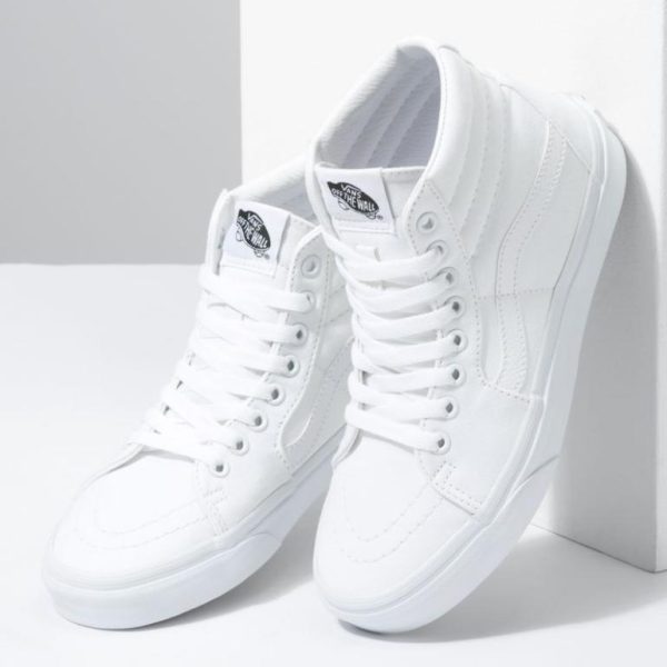 The Canvas Sk8-Hi, the legendary lace-up high top inspired by the Vans classic Old Skool, features sturdy canvas uppers, re-enforced toecaps to withstand repeated wear, signature waffle rubber outsoles, and padded collar and heel counters for support and flexibility.TAGShigh top shoes, white shoes