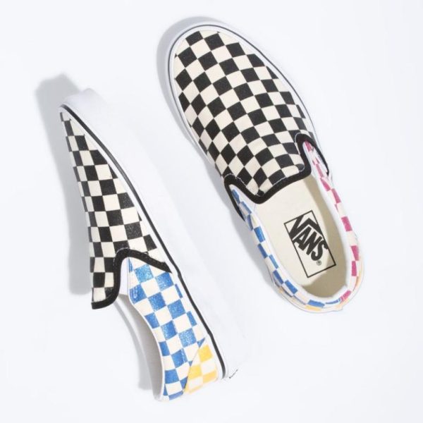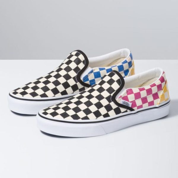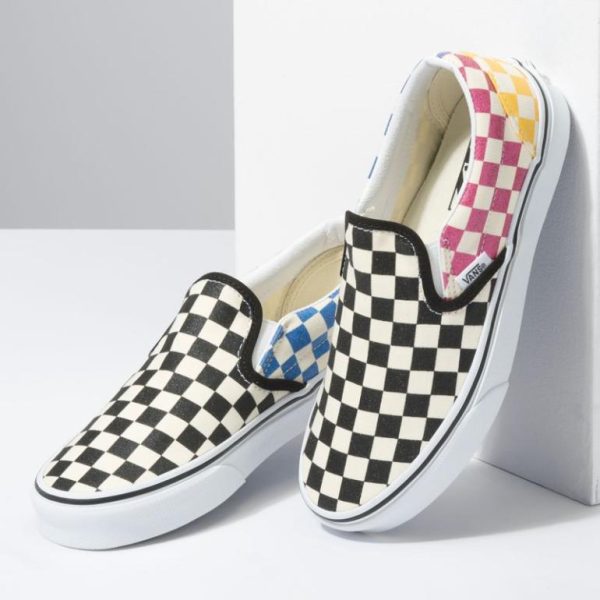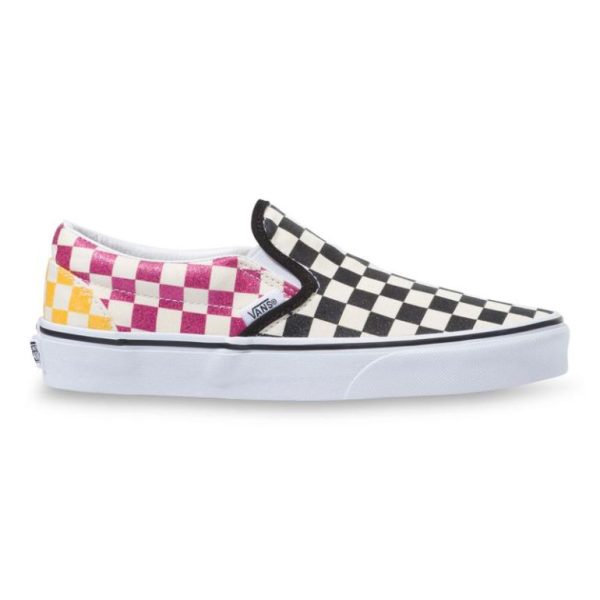 The Glitter Check Classic Slip-On features sturdy low profile slip-on canvas uppers with an allover checkerboard print, padded collars, elastic side accents, and signature rubber waffle outsoles.
