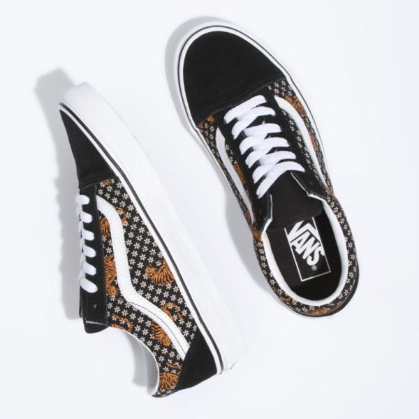 The Tiger Floral Old Skool, Vans’ legendary skate shoe that introduced their iconic sidestripe, features a low-profile lace-up design with durable suede and printed canvas uppers, reinforced toe caps for extended wear resistance, cushioned collars for superior support and flexibility, and their signature rubber waffle outsoles for ultimate grip.