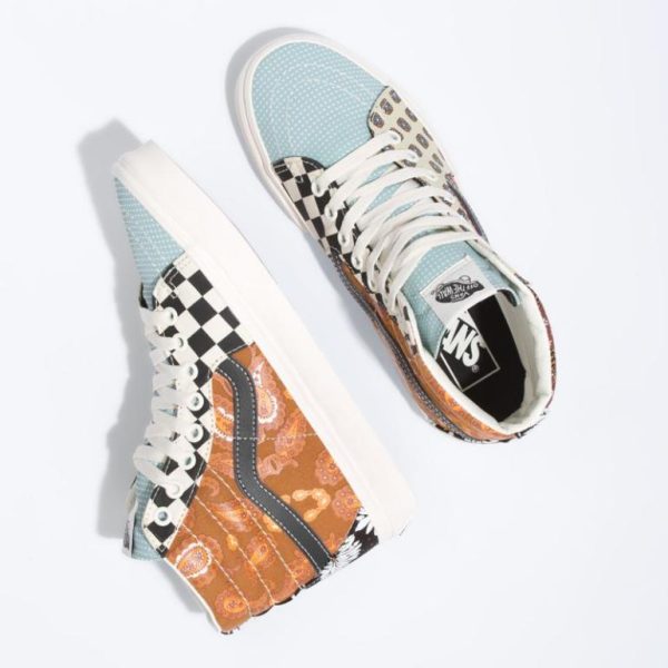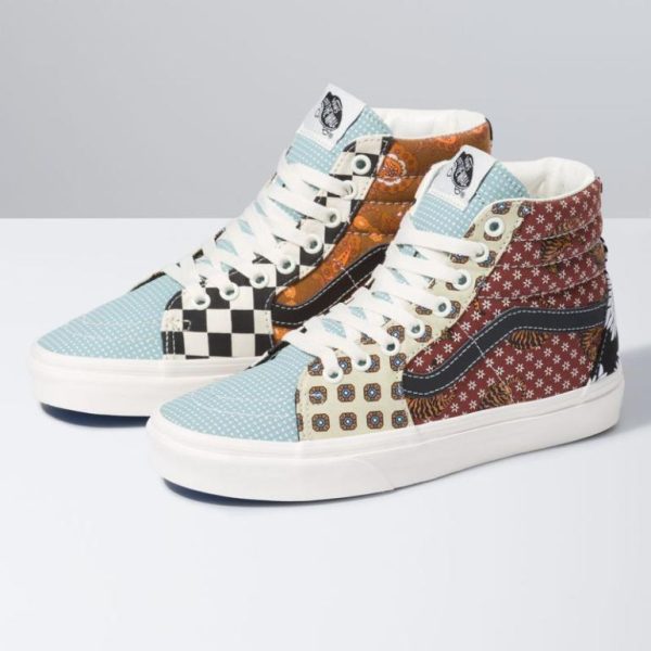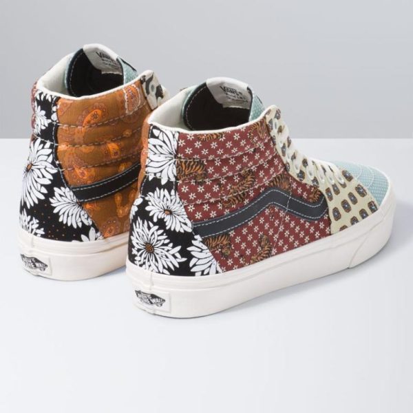 The Tiger Patchwork Sk8-Hi reimagines the iconic Vans lace-up high top silhouette with durable canvas and textile uppers featuring an eye-catching allover patchwork design. These premium sneakers include reinforced toe caps for enhanced durability, comfortably padded collars for superior ankle support and flexibility, and the signature rubber waffle outsoles that provide legendary grip and boardfeel.