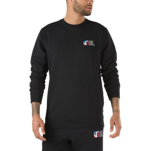 The Dimension Crew Sweatshirt is a 60% cotton, 40% polyester fleece pullover crewneck sweatshirt with screen printed logo graphics at the left chest and back. Model is 6 feet tall and wearing a size Medium.