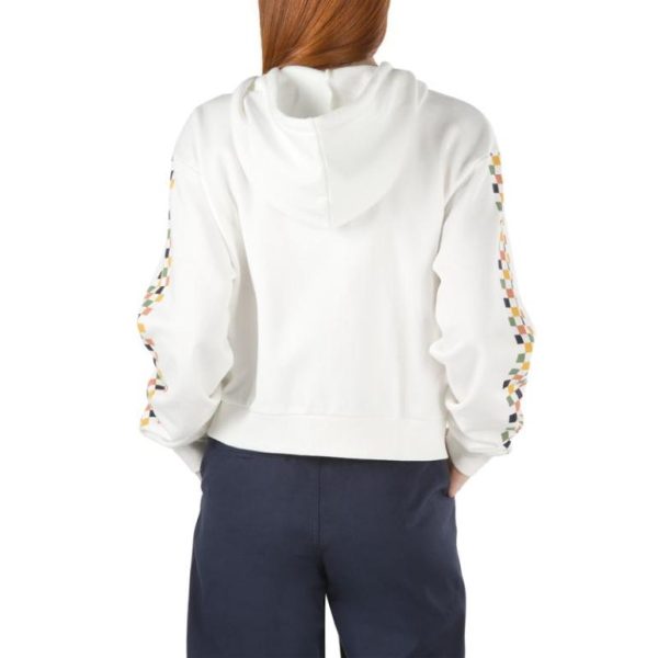 Free thinking, stylish and magnetic, Karina Rozunko has found her place at the forefront of the modern longboarding movement and couldn’t be more at home. Growing up in renowned lineups like San Onofre and Waikiki, Karina was riding surf craft before she could walk. Now, she can be seen gracefully dancing her way across world-class waves, and leaving a tasteful brushstroke of inspiration for future surfers both in and out of the water. An ode to the days of old, the Karina Hoodie is a 60% cotton, 40% polyester pullover hooded sweatshirt featuring retro colors, a minimalistic vibe, and a cropped fit. It also includes a logo screen print at the chest, and checkerboard screen prints at the sleeves. Model is 5 feet 9 inches tall and wearing a size Small.