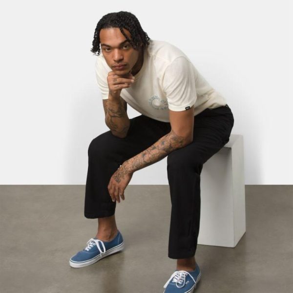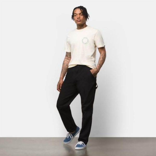 The Municiple Pant delivers rugged workwear style with modern comfort, crafted from 100% BCI Cotton 8 oz. rigid nailhead canvas. Featuring a flexible elastic waistband and a roomy, relaxed fit designed for all-day movement. Model is 6 feet tall and wearing a size Medium.