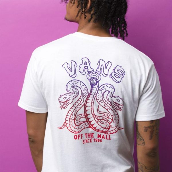 The Tres Culebras Short Sleeve T-Shirt features a premium heavyweight construction with bold graphics at the left chest and back for standout style. Fit type: classic. Model is 6 feet tall and wearing a size Medium.