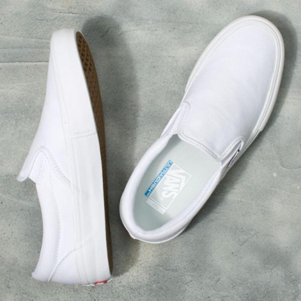 The iconic Slip-On Pro, expertly engineered for superior skate performance, features suede and canvas uppers, single-wrap foxing tape, UltraCush™ HD sockliners that maintain optimal board feel while delivering maximum impact protection, and Vans original waffle outsoles for exceptional grip and board control. The Slip-On Pro also includes Duracap™ reinforcement rubber underlays in high wear areas for unmatched durability and longevity.