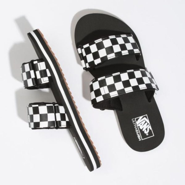 The all new Checkerboard Cayucas Slide features synthetic leather straps with the iconic checkerboard print and hook-and-loop adjustability, UltraCush Lite footbeds, durable rubber outsoles with the new sawtooth tread, and water-based inks and glues.