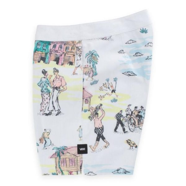 We’ve teamed up with Malaysian artist and winner of the Custom Culture contest in the Asian Pacific Region, Kide Baharudin, to deliver an original take on Vans culture and Off The Wall spirit. Kide’s illustrations depict a deep exploration into the relationship between human characters, their local culture, and history. In the Kide Boardshort 17″, Kide’s expressive talent is brought to life through a richly colorful print showcasing the lively coastal villages of his home country. It also features a classic cotton aesthetic with the modern-day comfort of 4-way stretch, a soft hand feel and quick dry time, side entry hand pockets, a rear patch pocket, and a Vans woven label at the knee. Model is 6 feet tall and wearing a size 32.