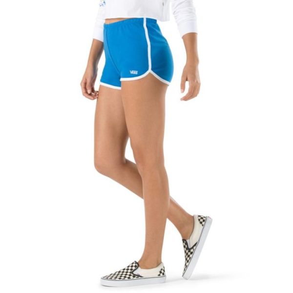 The Sassed II Short is a 60% cotton, 40% polyester whisper fleece elastic waist short with a scalloped hem, contrast binding, and a logo screen print. Model is 5 feet 9 inches tall, has a 23-inch waist, and is wearing a size Small.