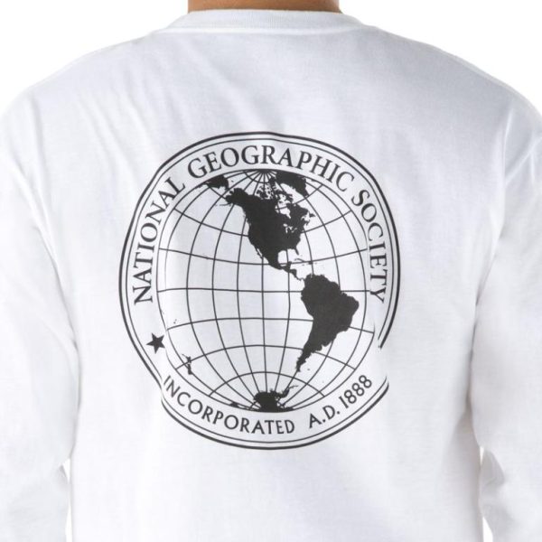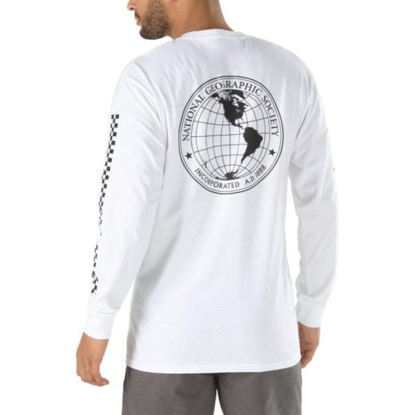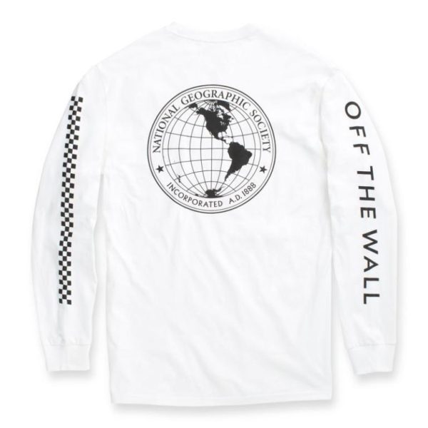 Vans and National Geographic come together for a collection of footwear and apparel that celebrates over 130 years of the never-ending quest to explore our planet. Honoring National Geographic’s longstanding tradition of seeking and storytelling, the Vans X National Geographic Long Sleeve T-Shirt features the iconic National Geographic seal that dates back to the Society’s founding in 1888. It also includes logo and checkerboard graphics. Discover the different styles in this collection, and become inspired to explore our planet. Model is 6 feet tall and wearing a size Medium.