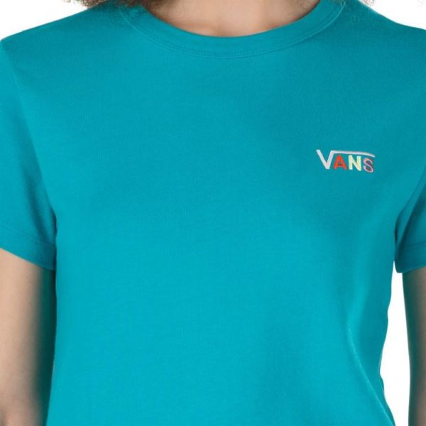 The Boom Color Baby T-Shirt is a heavy 100% cotton jersey baby tee with colorful embroidery at the chest. Model is 5 feet 9 inches tall and wearing a size Small.