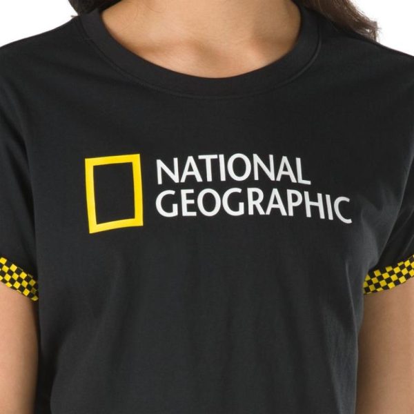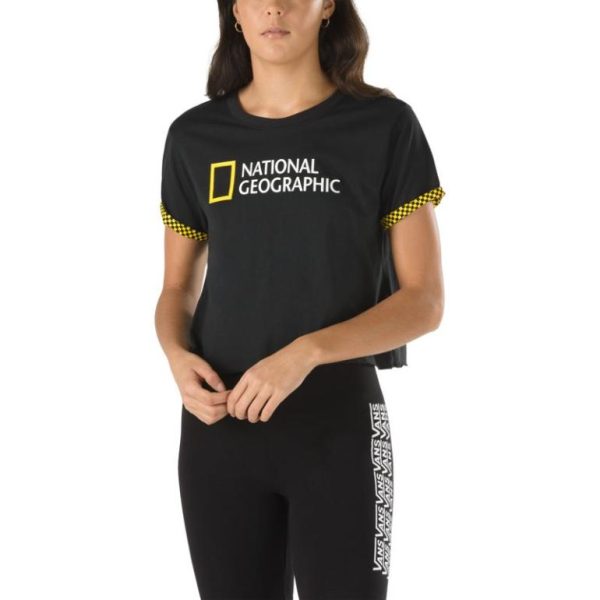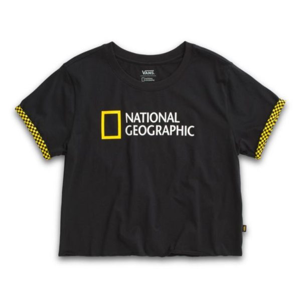 Vans and National Geographic come together for a collection of footwear and apparel that celebrates over 130 years of the never-ending quest to explore our planet. Honoring National Geographic’s longstanding tradition of seeking and storytelling, the Vans X National Geographic Rollout T-Shirt features rolled checkerboard hems and front graphics showcasing National Geographic’s iconic yellow portal. Discover the different styles in this collection, and become inspired to explore our planet. Model is 5 feet 9 inches tall and wearing a size Small.