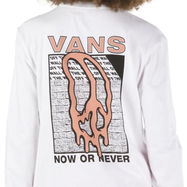 The Peace Drip Long Sleeve T-Shirt is a heavy 100% cotton jersey boyfriend tee with long sleeves and dripping peace sign graphics at the left chest and back. Model is 5 feet 9 inches tall and wearing a size Small.