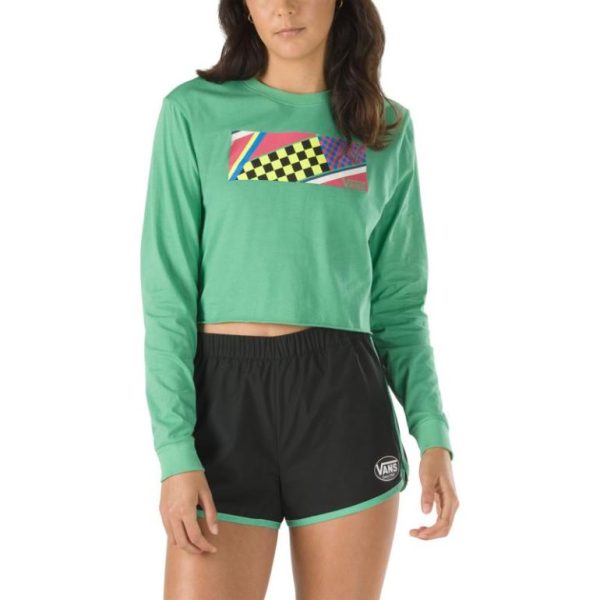 The Ramp Tested Long Sleeve Crop T-Shirt is a 100% cotton jersey long sleeve boyfriend tee with front graphics and a cropped fit. Model is 5 feet 9 inches tall and wearing a size Small.
