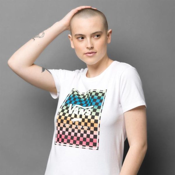 The Vintage Check Box T-Shirt is a heavy 100% cotton jersey crewneck tee with front graphics. Model is 5 feet 9 inches tall and wearing a size Small.