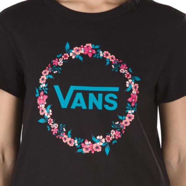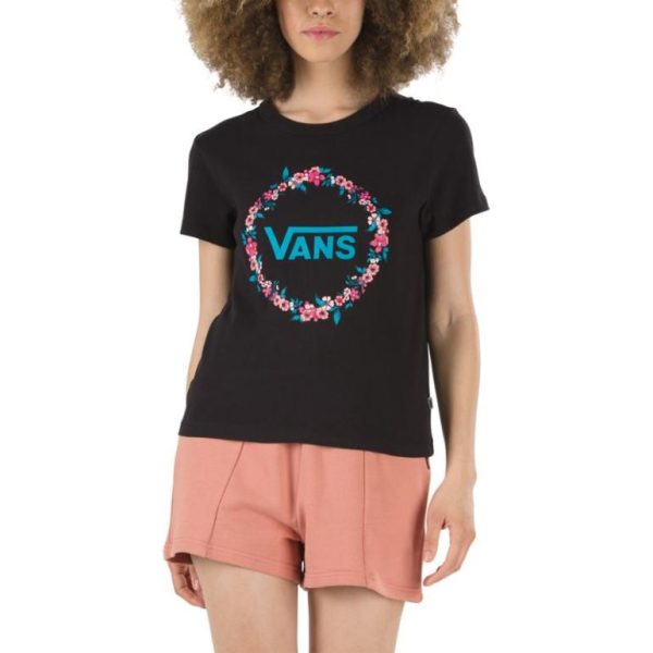 The Wreath Edger Baby T-Shirt is a heavy 100% cotton jersey baby tee with floral wreath and classic logo graphics at the front. Model is 5 feet 9 inches tall and wearing a size Small.