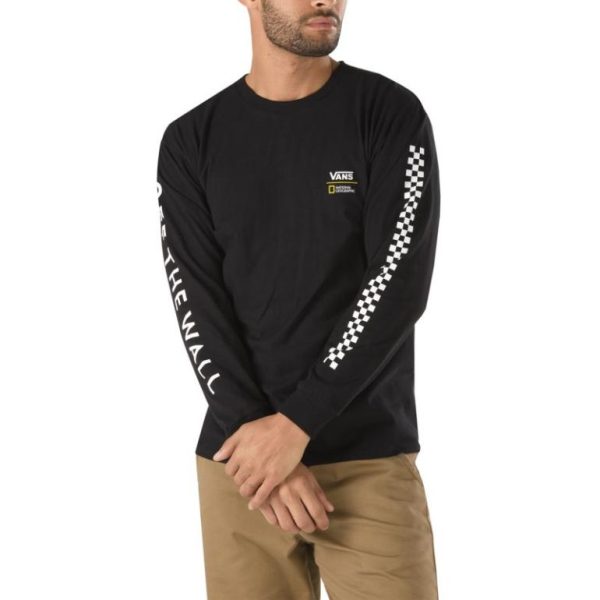 Vans and National Geographic unite for an extraordinary collection that honors over 130 years of global exploration and discovery. This limited-edition long sleeve t-shirt features the iconic National Geographic seal from 1888, celebrating the Society’s legendary storytelling tradition. Bold logo and classic checkerboard graphics create a standout style that inspires your own adventures. The model is 6 feet tall and wearing a size Medium.